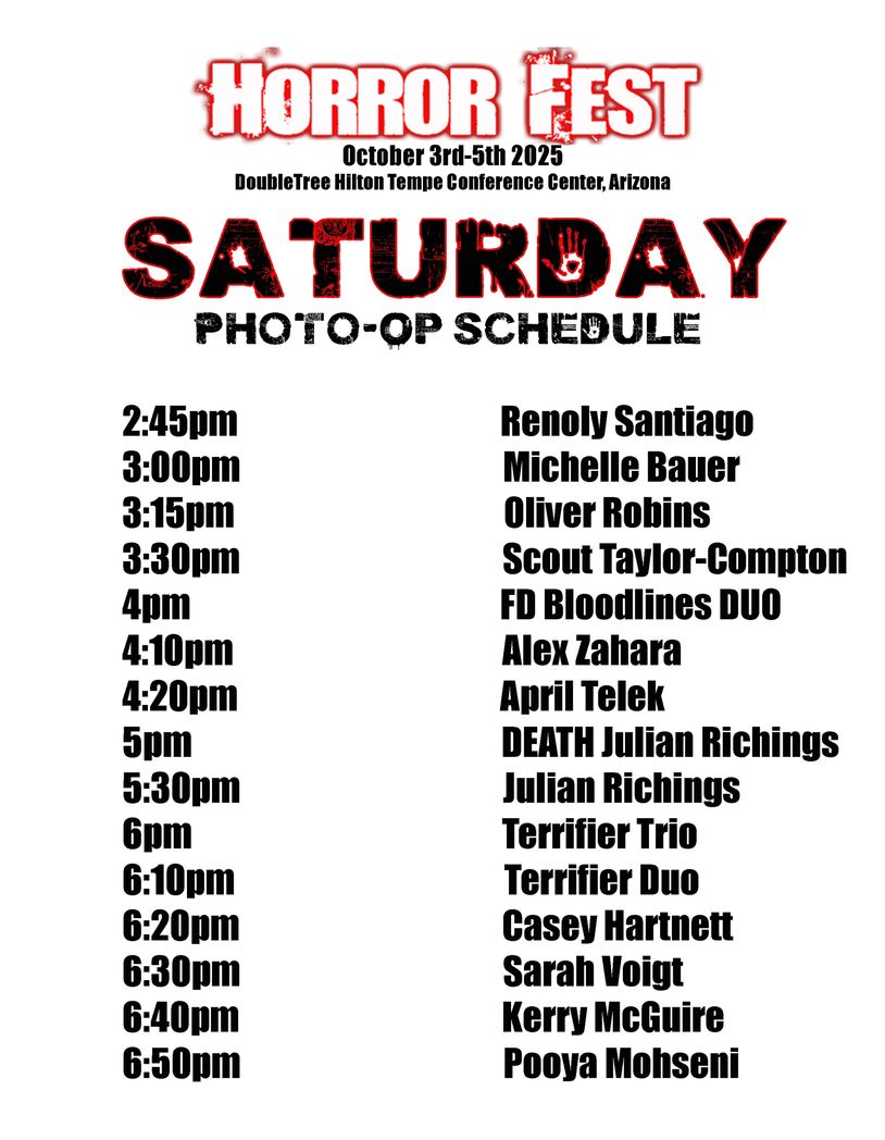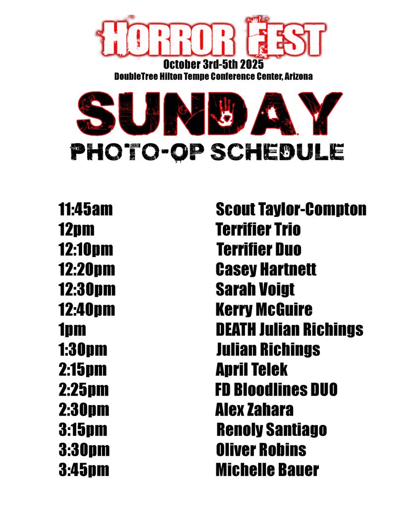 Once you purchase your Photo Op, which is in addition to the general entry ticket, you will check the website the week of the event to see the photo op schedule.
